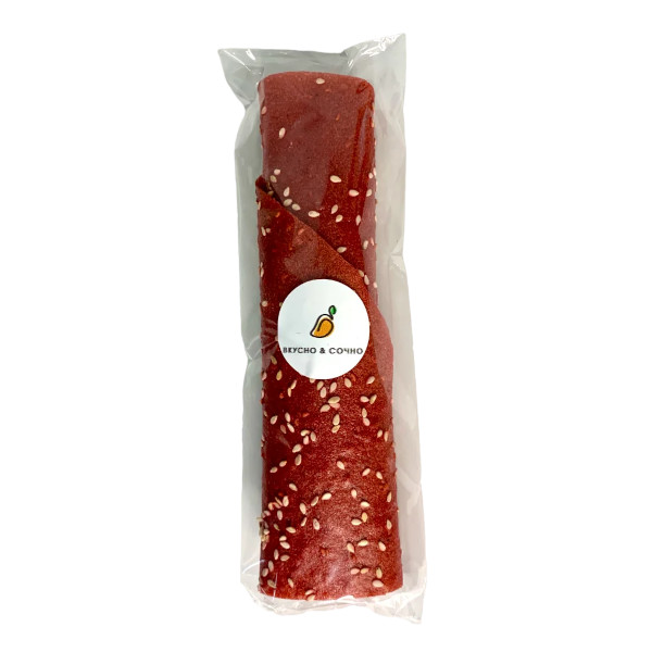 Фермерская пастила «Малина и золотой кунжут», состоящая только из натуральных ингредиентов, имеет сочный фруктовый вкус. Этот полезный и вкусный перекус изготовлен вручную, без консервантов и сахара.