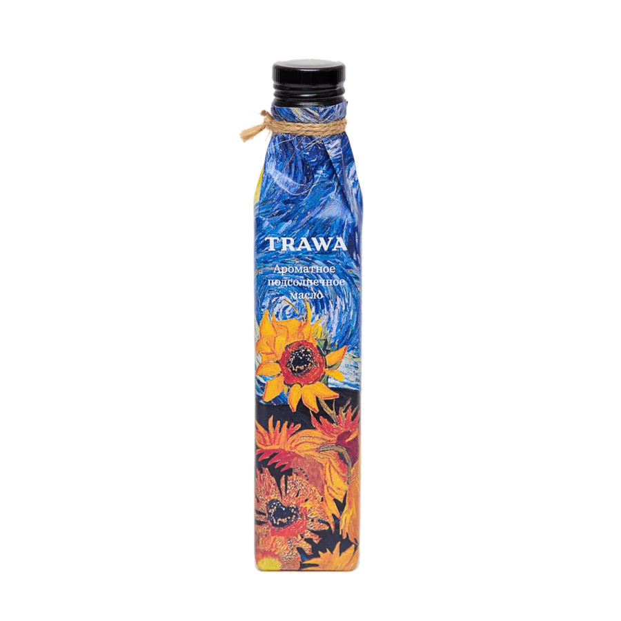 Сыродавленное ароматное подсолнечное масло Trawa имеет нежно-жёлтый цвет, натуральный вкус и яркий аромат обжаренных семечек подсолнуха. Произведено старинным методом отжима в дубовых бочках, без применения химических веществ и без контакта с металлом. Перед процедурой отжима половину семечек обжаривают при низкой температуре.