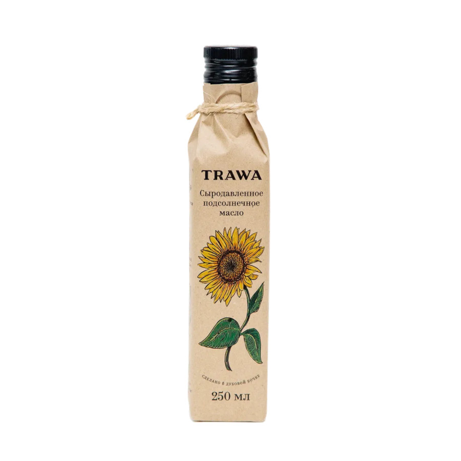 Сыродавленное подсолнечное масло Trawa имеет светлый, слегка желтоватый цвет, натуральный вкус и деликатный аромат семечек подсолнуха. Произведено старинным методом отжима в дубовых бочках, без применения химических веществ и без контакта с металлом и пластиком.