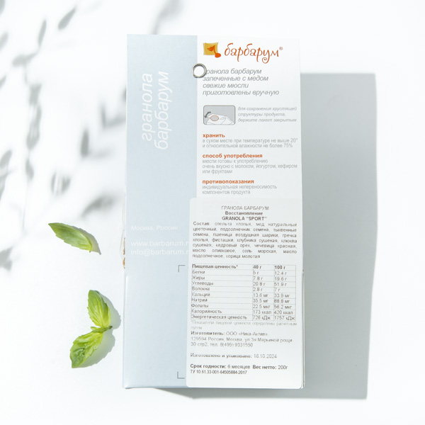 Барбарум - авторские свежеизготовленные мюсли, которые изготавливаются в строгом соответствии со стандартами, принятыми для пищевой промышленности России.