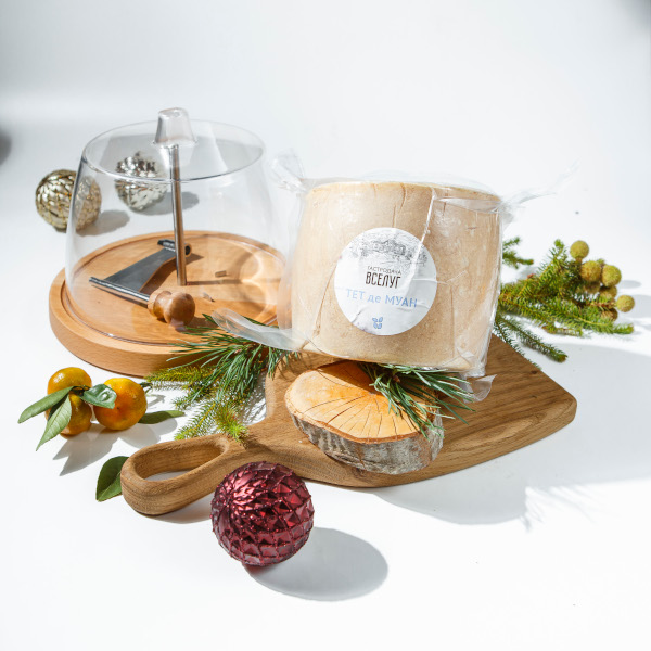 Тет-де-муан — фермерский полутвёрдый сыр для настоящих гурманов. Это представитель швейцарской группы сыров, который варится по специальной рецептуре и технологии из непастеризованного коровьего молока. Он имеет изумительный аромат и маслянистый, слегка пикантный вкус. С помощью входящего в набор инструмента жироль (специального сырного ножа) вы сможете нарезать сыр красивыми кусочками в форме цветочных бутонов.