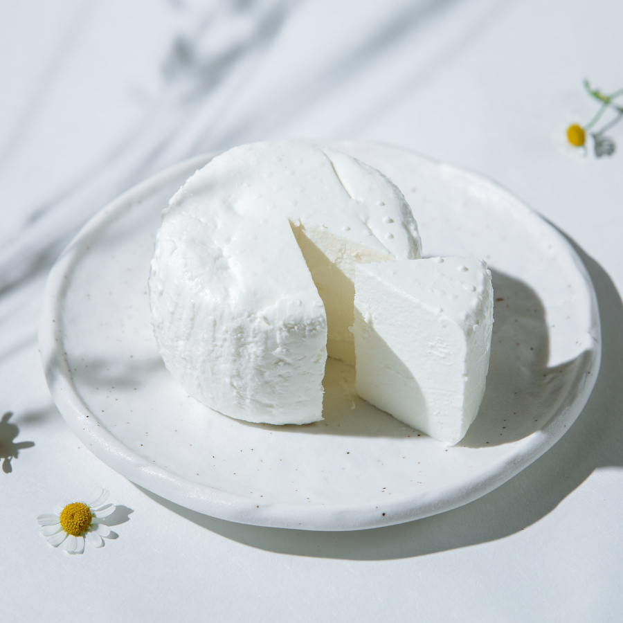 Классический десертный сыр из козьего молока с небольшой выдержкой, обладающий ярким вкусом. Мягкий, с нежным сливочным вкусом и приятным молочным ароматом.