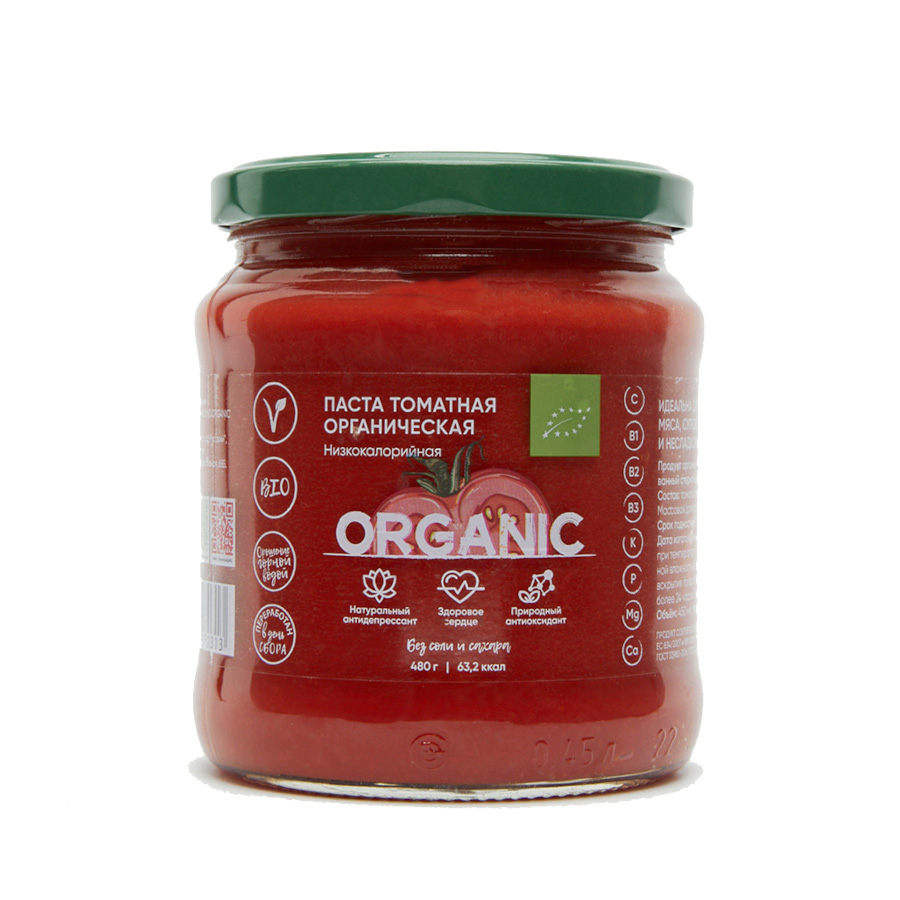 Органическая томатная паста изготовлена из собранных вручную спелых томатов, выращенных в Ставропольском крае на полях, для обработки которых используются только безопасные биоудобрения и естественные способы восстановления почвы.
