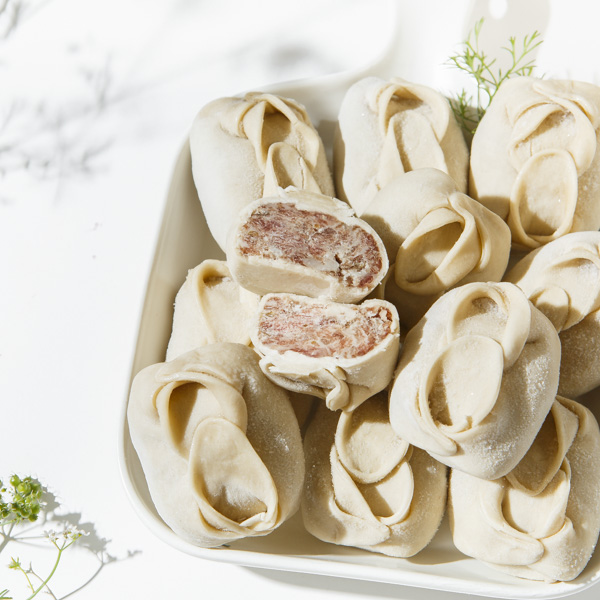 Состав: мука пшеничная хлебопекарная высшего сорта, вода питьевая, молоко коровье натуральное, яйцо куриное, масло растительное, баранина мякоть, жир курдючный, лук репчатый свежий, зира, соль морская, перец чёрный молотый.