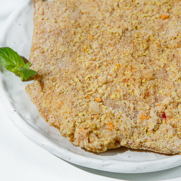 Состав: грудка куриная, масло оливковое, яйцо, соевый соус, соль, сахар, сухари панировочные.