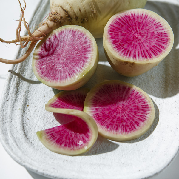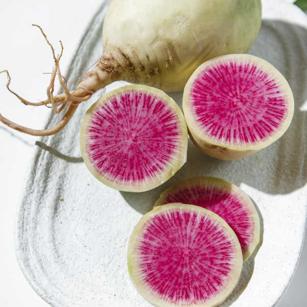 Свежая арбузная редька от крестьянско-фермерского хозяйства Бориса Спивакова — это сочные и хрустящие корнеплоды с эффектной сердцевиной розового цвета, напоминающие арбуз в разрезе. Обладают сладкой мякотью и кожурой с лёгкой горчинкой. Овощи выращиваются по системе «органик» в станице Киевская Краснодарского края.Хрустящая сочная редька отлично подойдет для свежих пикантных салатов (в том числе с нашим фермерским сыром), закусок и гарниров.