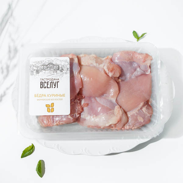 Охлаждённые куриные бёдра от фермерского хозяйства имеют ярко выраженный, натуральный вкус и отлично подойдут для жарки, запекания, тушения и варки.Мясо идеально сочетается с отварным картофелем или пюре, рисом, гречкой, тушёными овощами, пастой, супами, салатами из свежих овощей и зелени.
