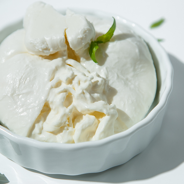 Сырный «мешочек» из моцареллы с волокнами сочной страчателлы в свежих сливках. Обладает нежнейшим сливочным вкусом и ароматом. Шарик бурраты напоминает снаружи моцареллу, но внутри имеет мягкую сливочную консистенцию с волокнами более нежного сыра.