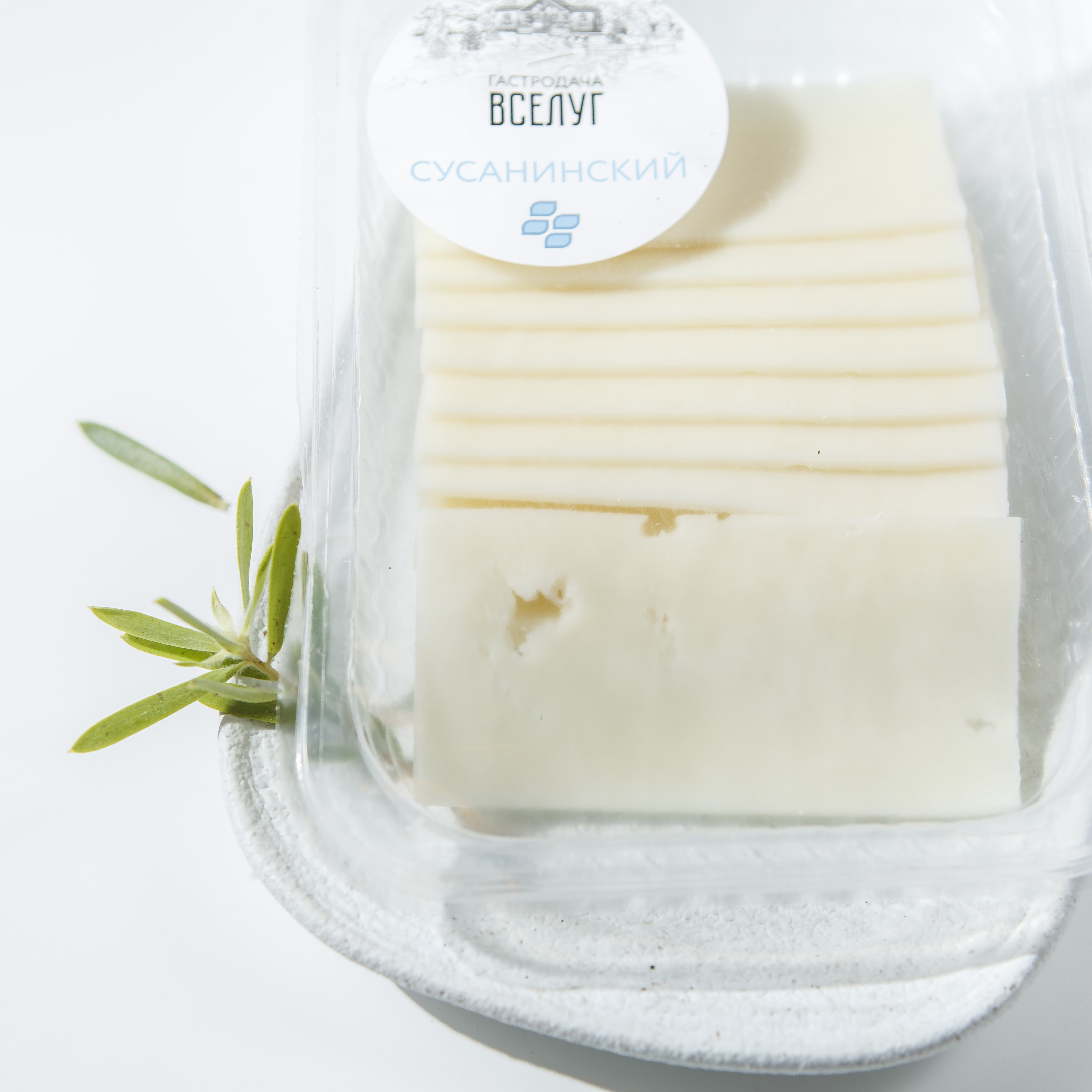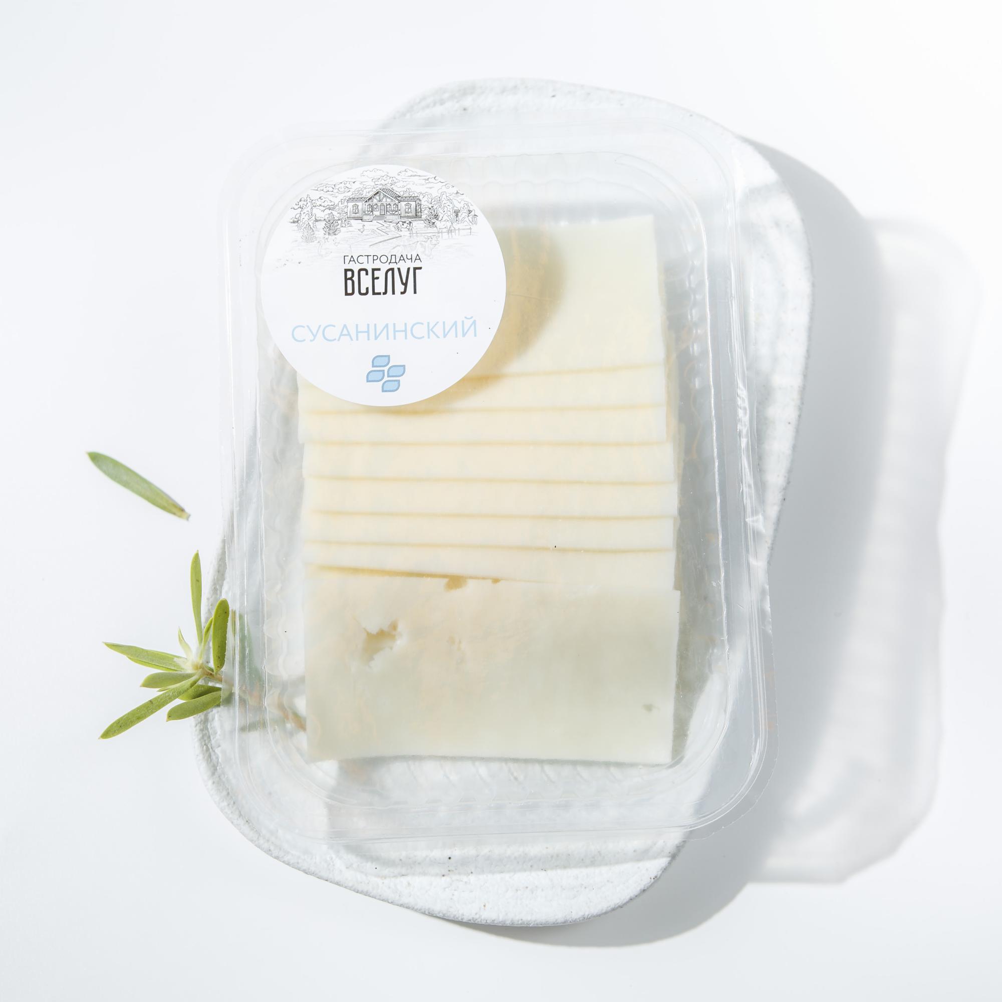 Сыр Сусанинский имеет текстуру с дырочками, обладает нежным сырным ароматом и очень насыщенным молочным, даже сливочным, вкусом.