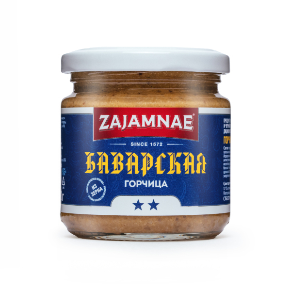 Горчица Zajamnae «Баварская» изготовлена из смеси семян двух видов горчицы, измельчённых методом холодного дробления. Благодаря такому способу измельчения сохраняются все полезные свойства горчичных зёрен. Мягкий вкус понравится любителям не очень острой горчицы.