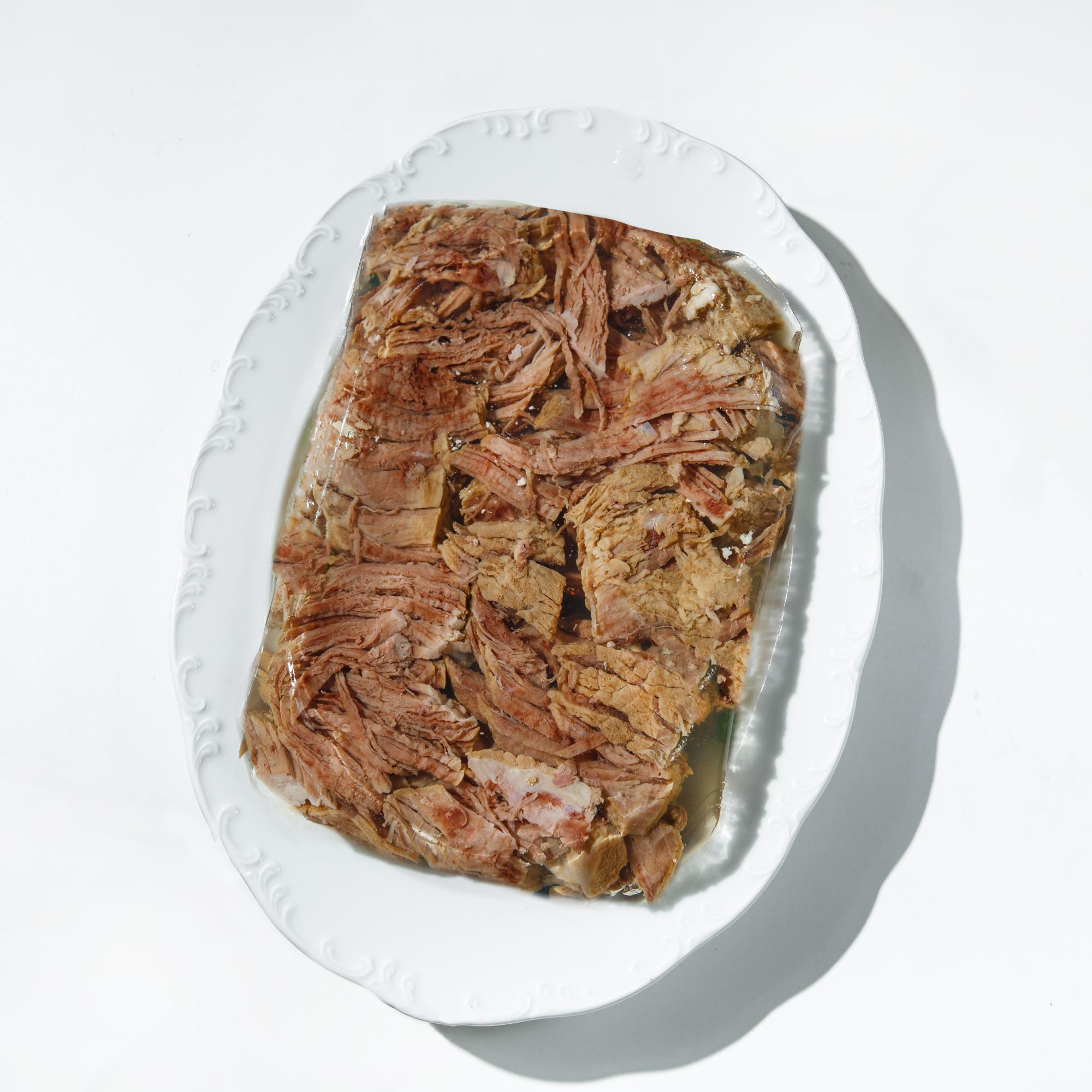 Классический холодец из телятины (говядины) — это деликатесное блюдо, приготовленное по домашнему рецепту из натуральных ингредиентов. Насыщенный мясной вкус ломтиков отварной телятины, залитых прозрачным желе из бульона из нашей фермерской говядины, оттеняет вкус лаврового листа и чеснока.