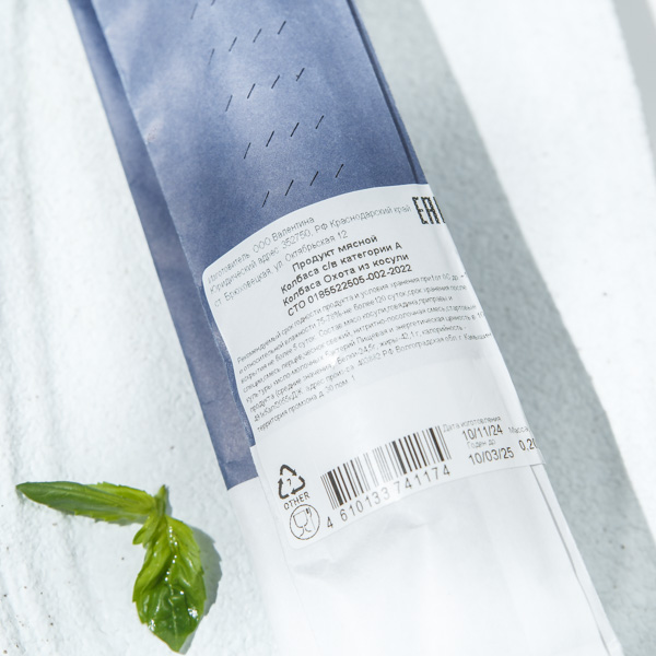 Состав: мясо косули, говядина, приправы и специи, смесь перцев, чеснок свежий, нитритно-посолочная смесь, стартовые культуры кисломолочных бактерий.