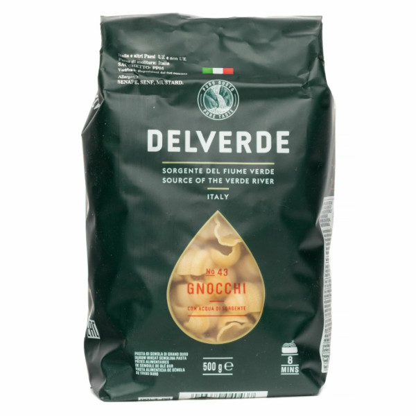 Итальянские макароны Delverde «Ньокки» — это результат сочетания двух простых, но основополагающих элементов: чистой родниковой воды и лучшей муки семолина, смолотой из твёрдой пшеницы. Они превосходны с точки зрения питательных свойств и идеально подходят для тех, кто придерживается принципов здорового питания.