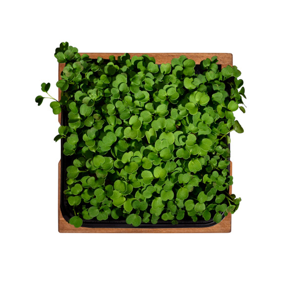 Микрозелень руколы в горшочке — свежая зелень с пряным, чуть острым вкусом с горьковатыми ореховыми нотками, содержащая минимум калорий. Поэтому идеально подходящая для тех, кто следит за своей фигурой и заботится о здоровье. Микрозелень, имеющая только первые миниатюрные листочки, содержит большую концентрацию витаминов и минеральных веществ, чем у взрослых растений.