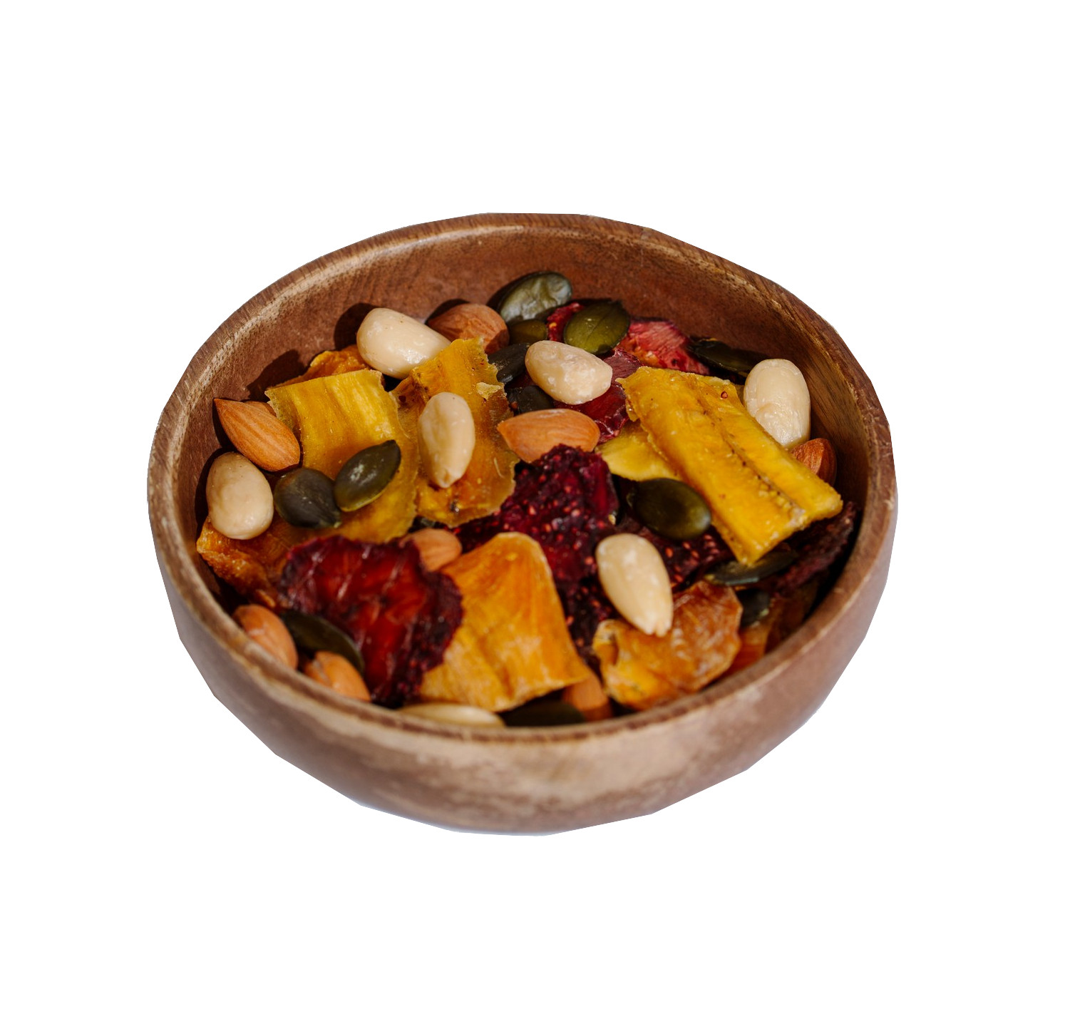 Яркая и вкусная орехово-фруктовая смесь «Праздничная 2» состоит из сушёных фруктов и ягод (хурма, яблоки, клубника) и активированных орехов: бланшированного миндаля, абрикосовой косточки и семян тыквы. Процедура активации (продолжительного замачивания в воде) меняет химический состав и запускает механизм прорастания. Всё это улучшает внешний вид и вкус орехов, уменьшает содержание фитиновой кислоты, улучшает усвояемость минералов и активирует ферменты, облегчающие переваривание орехов.