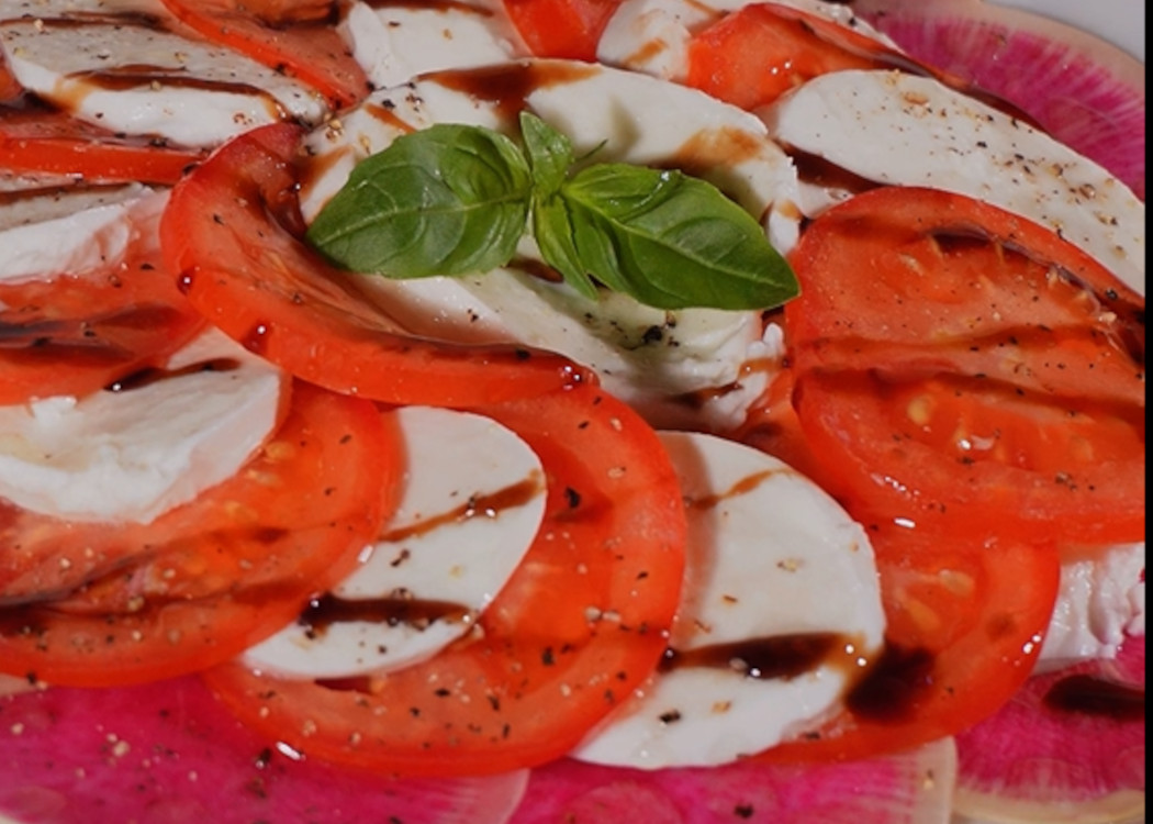 Сочетание терпкой редьки, спелых томатов, нежной фермерской моцареллы – и идеальная закуска (а может быть – и полноценный перекус) готова!